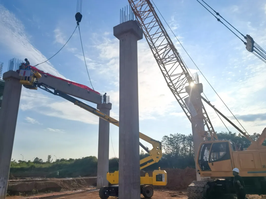 項(xiàng)目直擊丨航發(fā)智慧物流園018號項(xiàng)目首片預(yù)制梁精準(zhǔn)吊裝到位
